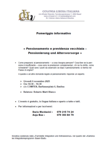 Pensionamento e previdenza vecchiaia – pomeriggio informativo a Basilea