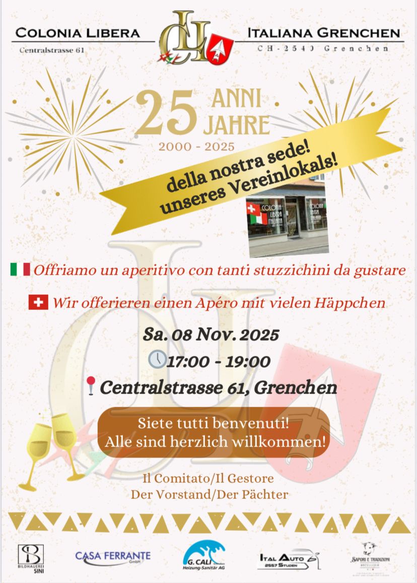 Un traguardo importante per la Colonia Libera Italiana di Grenchen , che nel 2025 celebra i 25 anni della sua...