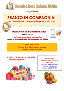 13 – 14 dicembre 2025 Organizzata dalla Cli Niedergösgen-Schönenwerd Anche quest’anno la Colonia Libera Italiana di Niedergösgen–Schönenwerd invita soci, amici...