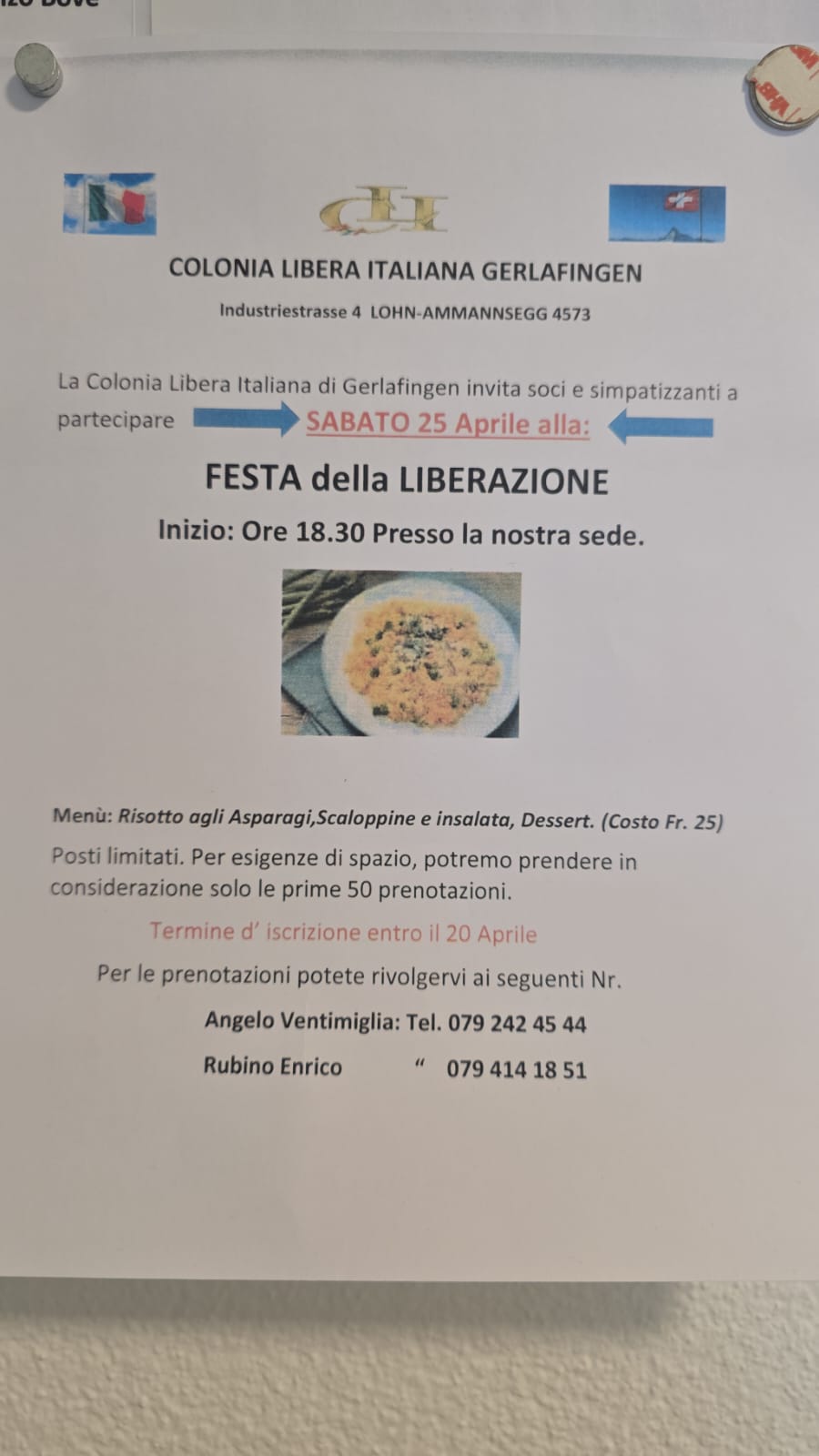 La Colonia Libera Italiana di Gerlafingen ha il piacere di invitare tutti i soci e i simpatizzanti a celebrare insieme una ricorrenza speciale.