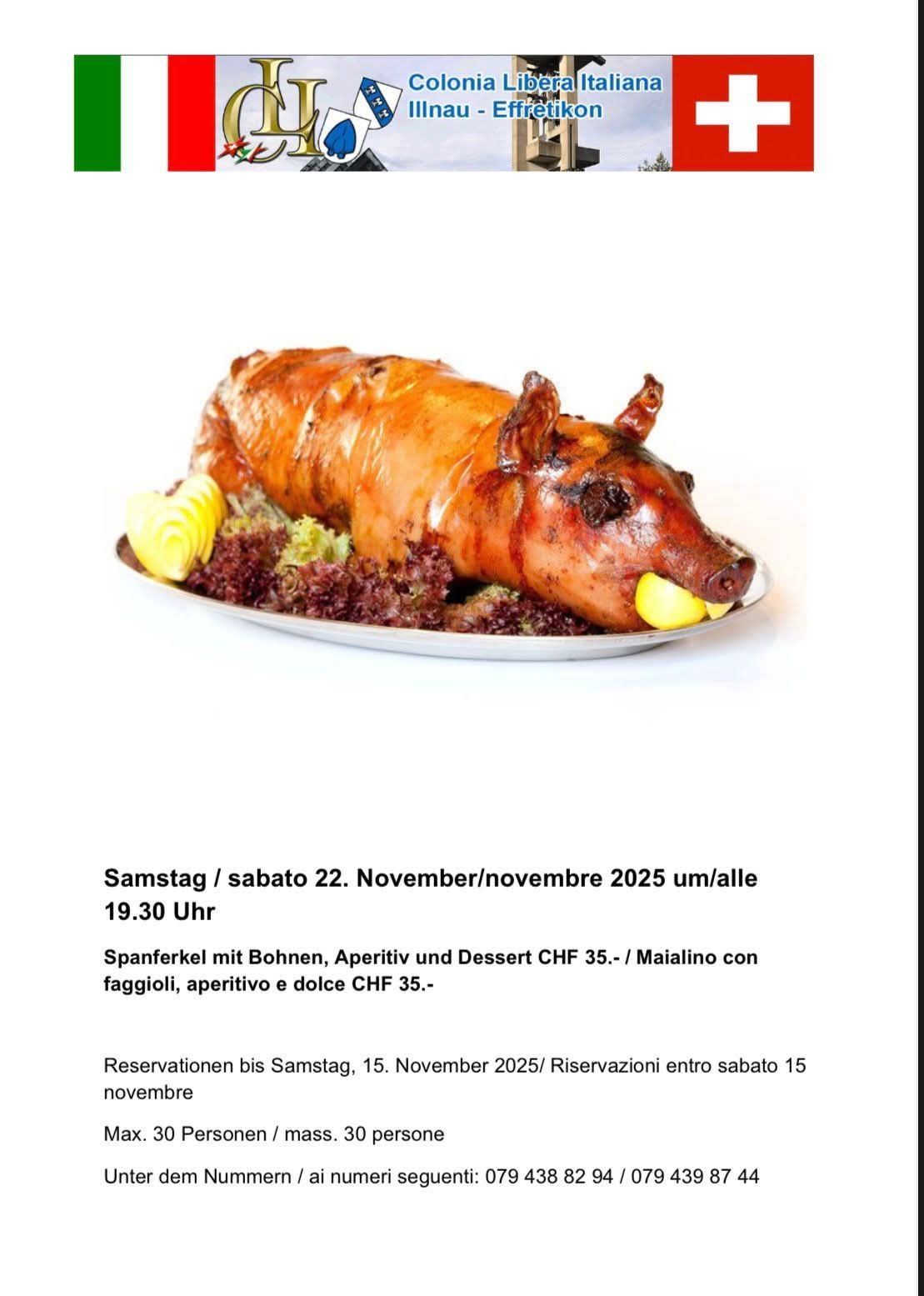 Sabato 22 novembre 2025, alle 19:30, la Colonia Libera Italiana di Effretikon invita soci, amici e simpatizzanti a una gustosa serata autunnale dedicata alla tradizione e alla convivialità.